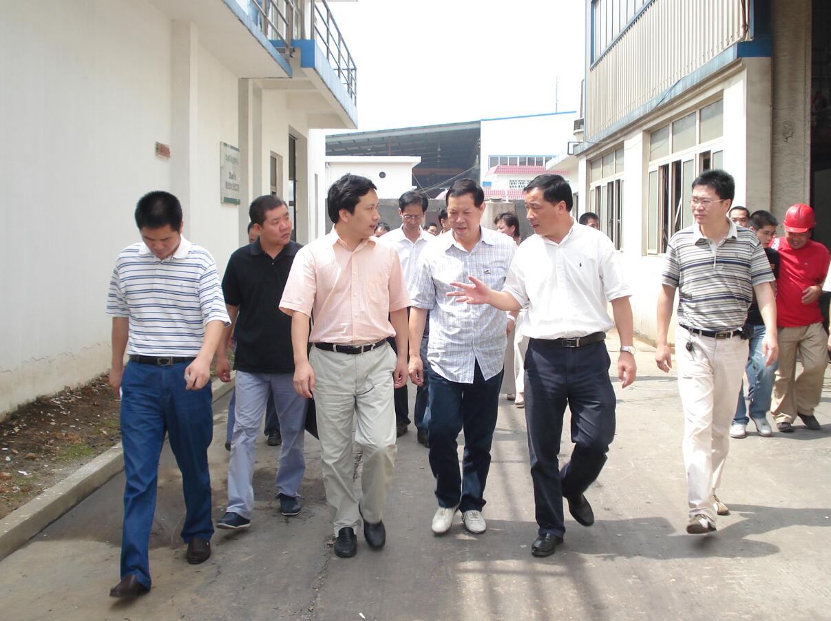 河北省委副書記趙一德(時(shí)任溫州市委副書記、市長,左三)視察華迪鋼業(yè)集團(tuán),深入了解公司污水處理工程建設(shè)運(yùn)行情況。